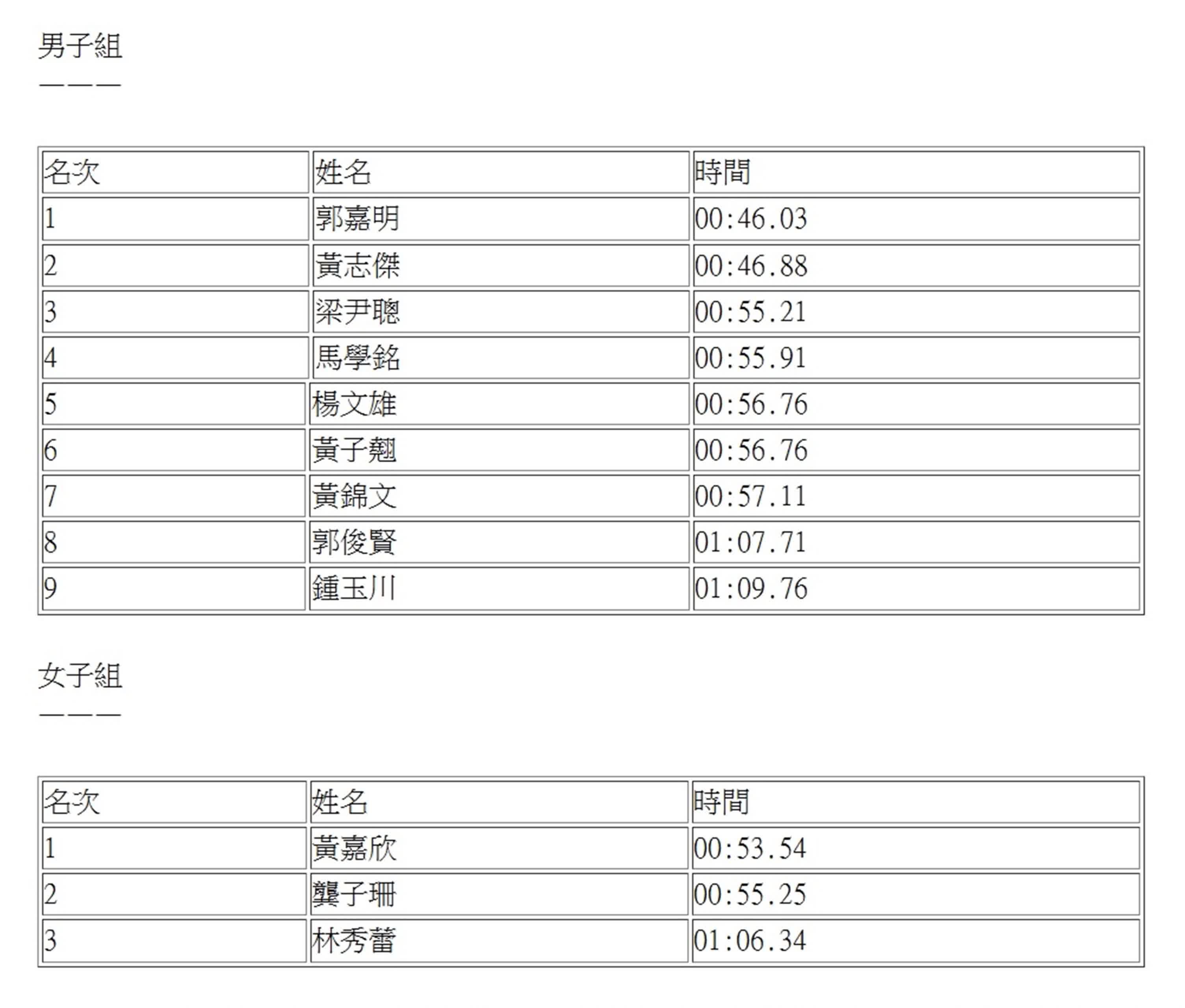 12名健兒(9男3女)為:
