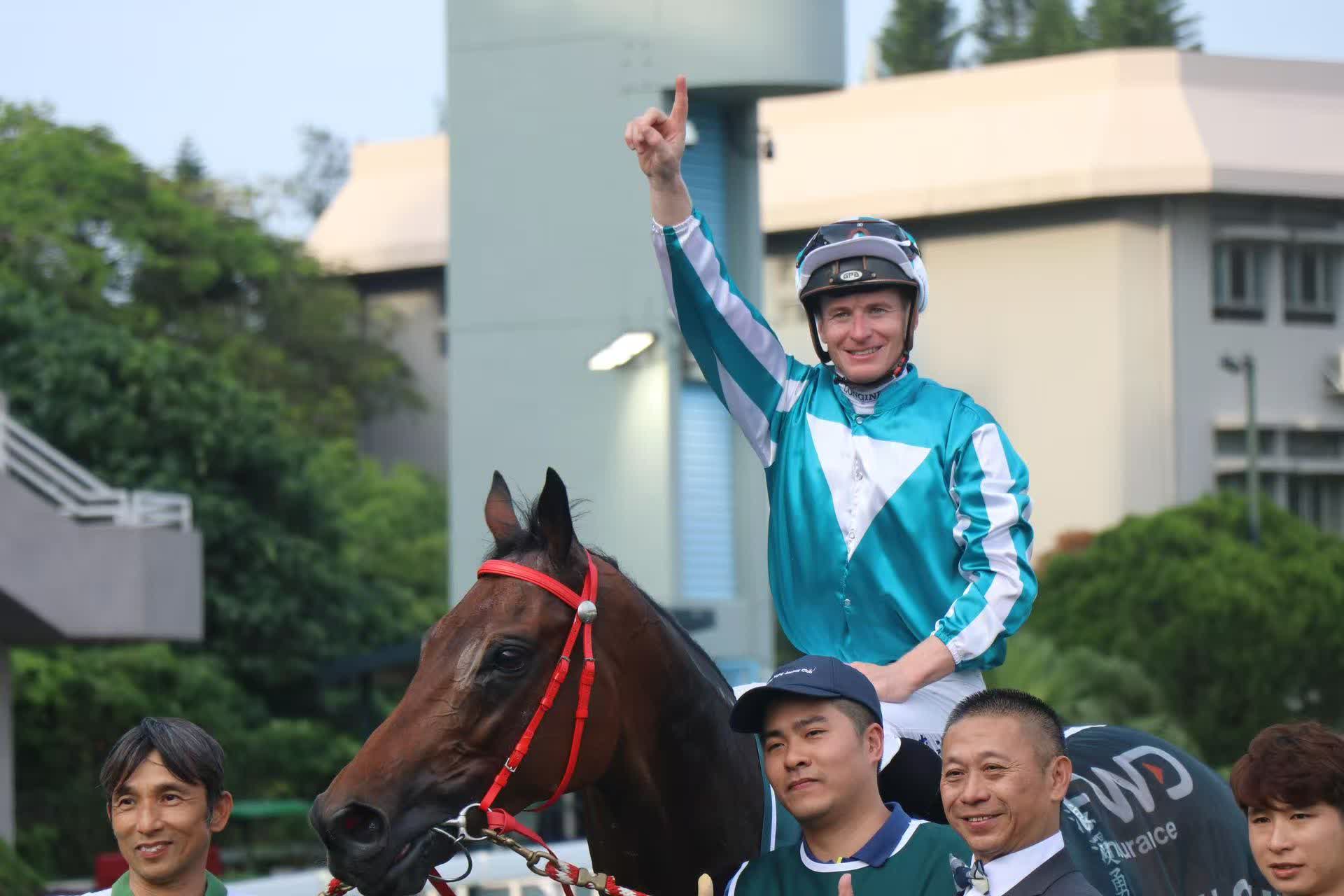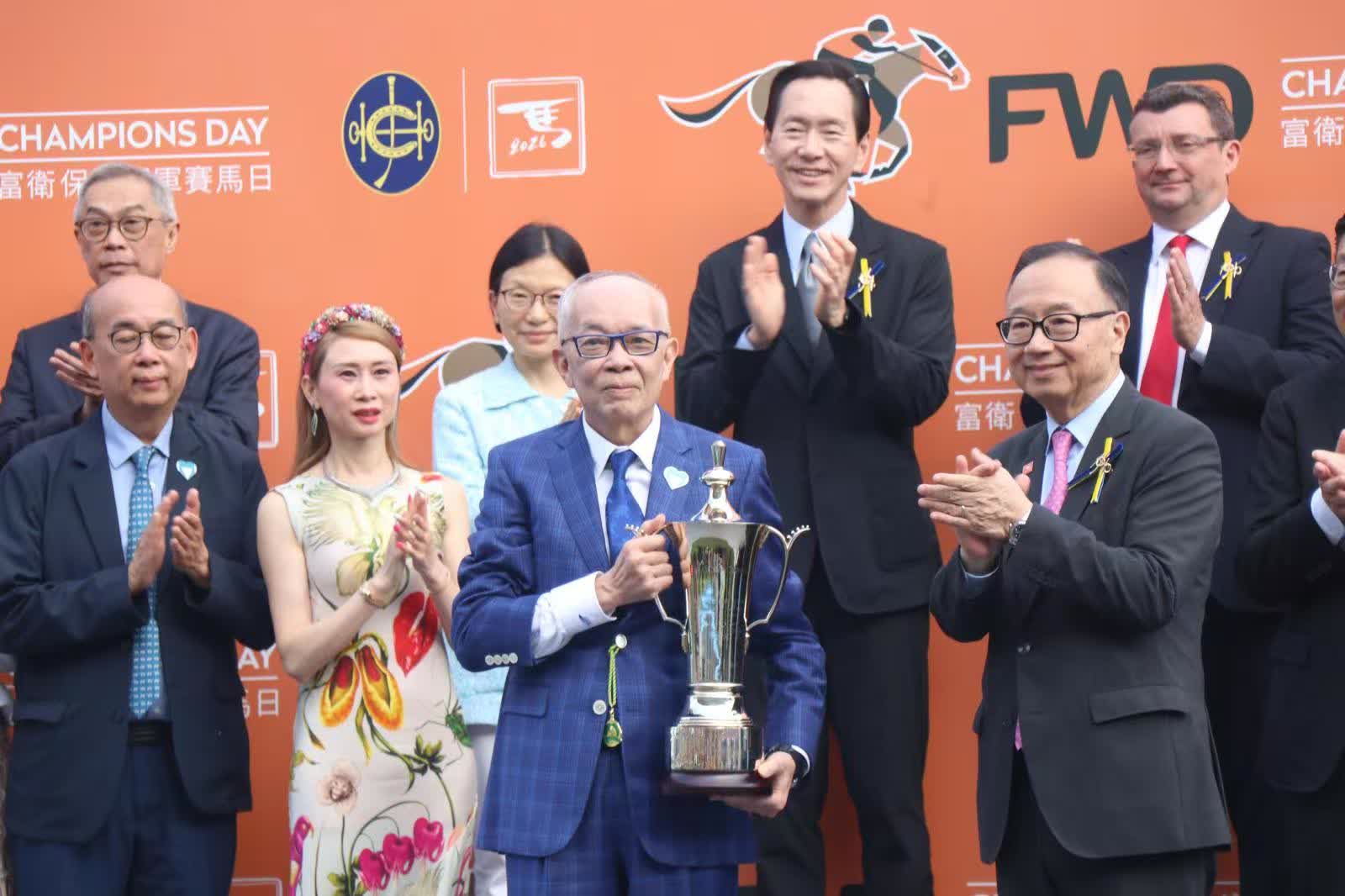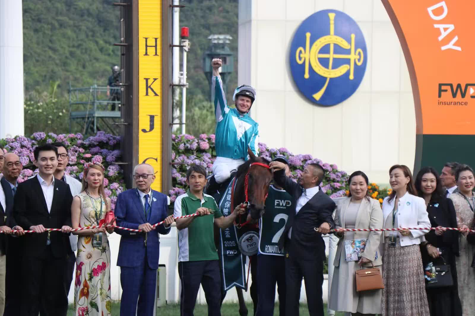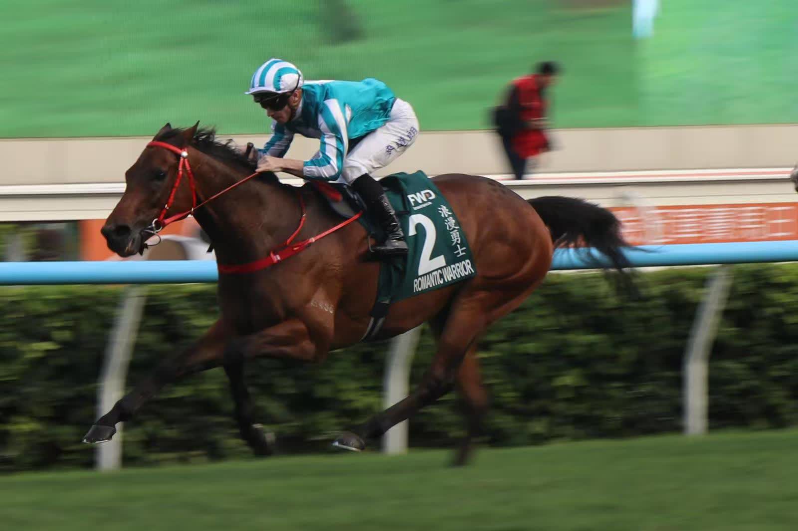 馬主劉栢輝名下的「浪漫勇士」,今仗即便面對步速緩慢處境,仍憑藉驚人爆發力擊敗海外強敵「蒙面舞會」奪冠,劉栢輝先生今日喜事成雙,他除了憑這匹傳奇馬王創下歷史外,亦以馬主團體成員身份憑「祝願」勇奪冠軍一哩賽(1600米),風頭一時無兩。