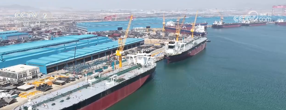 近年来,我国造船业整体水平持续提升,企业竞争力不断增强。我国船厂何以在激烈的全球竞争中突围?这里是大连长兴岛的一个造船基地。船坞正在注水,待水位达到10米以上,坞内船舶便将集体出坞。接下来,它们将进入舾装和系统调试阶段,预计再过三个多月就能正式交付出口。不远处的码头上,还有4艘超大型油轮正整装待发等待交付。企业负责人介绍,当前,油船的运力市场需求旺盛,能否更快交付成了获得订单的决定性因素。为此,他们首先在装备上下了功夫,配置了2000吨级龙门吊。企业负责人王雷介绍,他们配置了大型龙门吊之后,可以实现大型总段搭载一条VLCC(超大型油轮)仅用35钩即可实现吊装作业,船坞的效率或者搭载速度是别人的一倍。