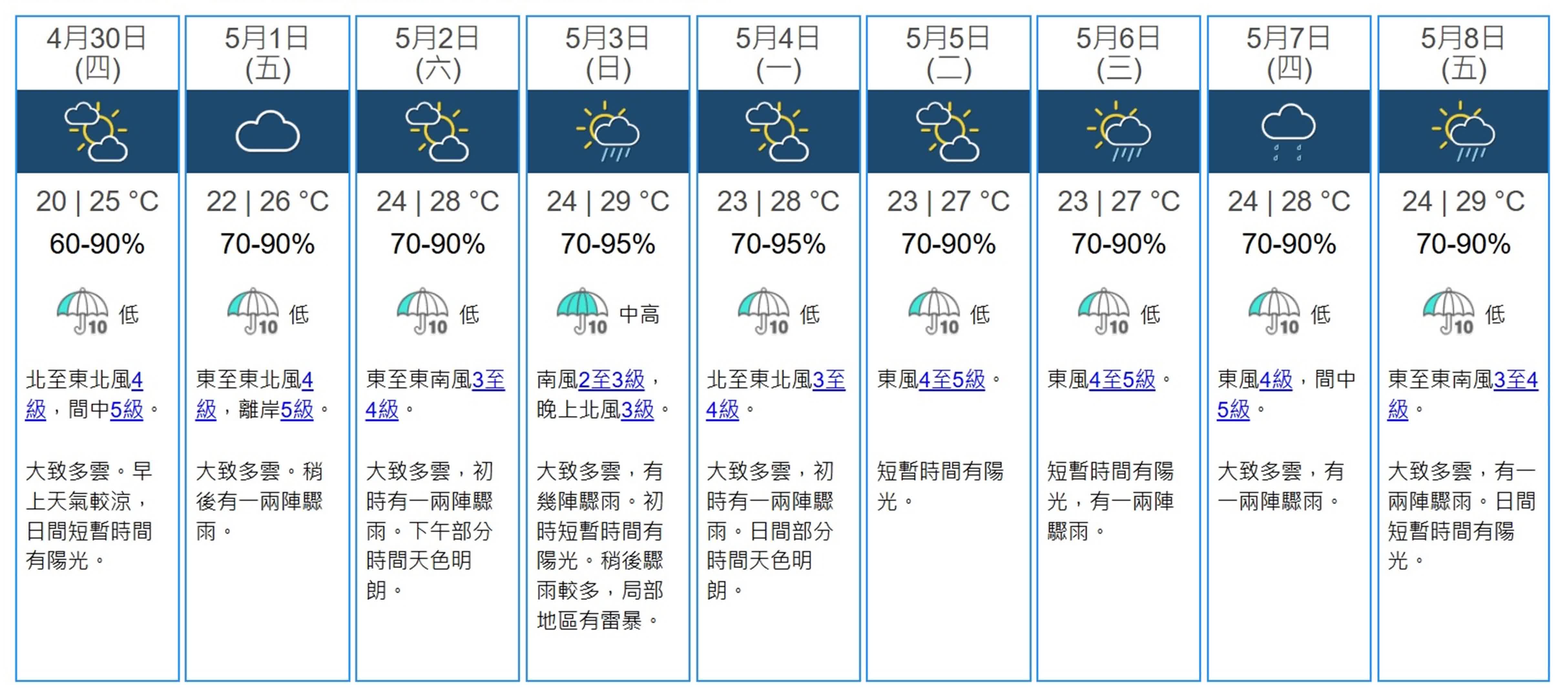 受冷鋒影響 文台預測明早市區最低氣溫約20度 新界再低一兩度