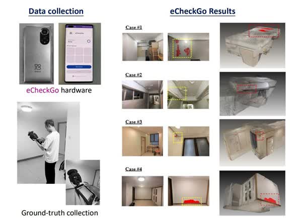 在應用層面,eCheckGo強調操作簡易。用戶可透過手機應用程式拍攝建築物內外影像,亦可直接使用現成的Google街景圖像。系統能自動偵測裂縫、混凝土剝落等常見缺陷,並把分析結果整合至生成的3D雲端數據點模型中。透過互動式3D模型,用戶可放大或縮小畫面,清晰檢視缺陷的實際形狀與尺寸,從而更全面掌握樓宇狀況。