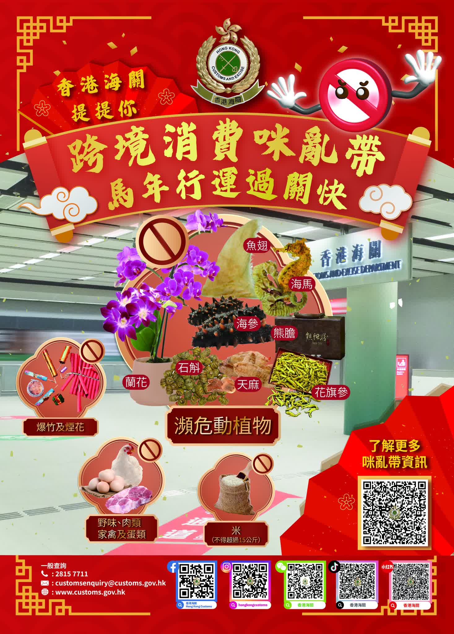 農曆新年蘭花及肉類等11類物品入境受管制 海關提醒市民跨境消費勿亂帶