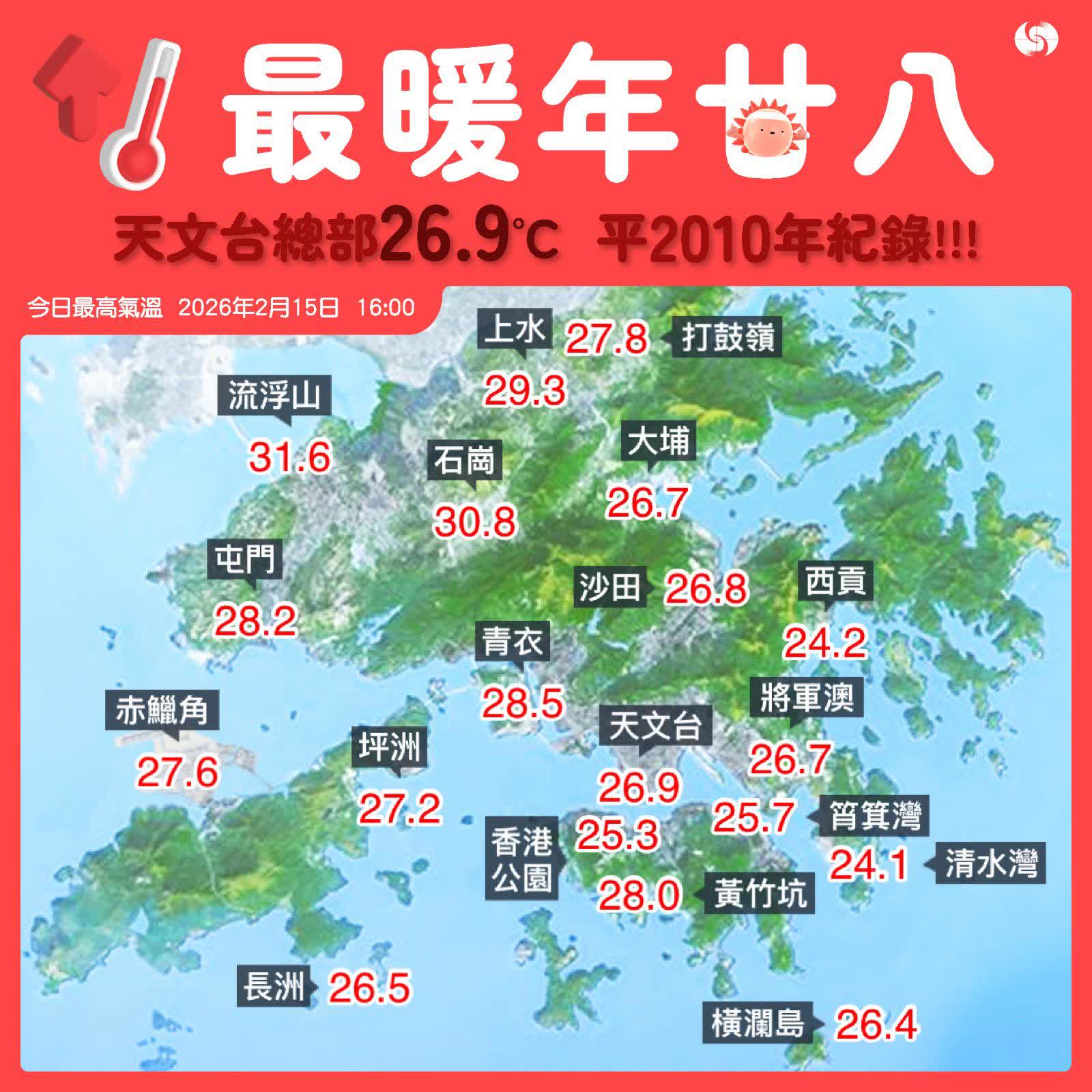 天文台今錄26.9度平年廿八最高溫紀錄 料年廿九日間最高27度
